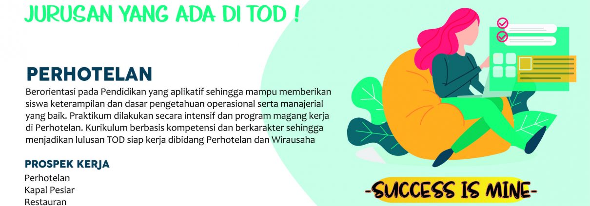 PERHOTELAN Berorientasi pada Pendidikan yang aplikatif sehingga mampu memberikan siswa keterampilan dan dasar pengetahuan operasional serta manajerial yang baik. Praktikum dilakukan secara itensif dan program magang kerja di Perhotelan. Kurikulum berbasis kompetensi dan berkarakter sehingga menjadikan lulusan TOD siap kerja dibidang Perhotelan dan Wirausaha. ROSPEK KERJA Perhotelan Kapal pesiar Restaurant Catering Bakery Ayo segera daftarkan […]